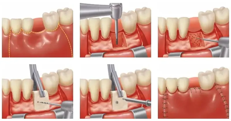 A simple procedure allows the sinus floor to be repositioned, creating enough space to properly place an implant. Various grafting materials are used to encourage your bone to grow more quickly into the area, helping to stabilize the dental implant. Replace with your own bone in this area the grafting material as it grows into the area.